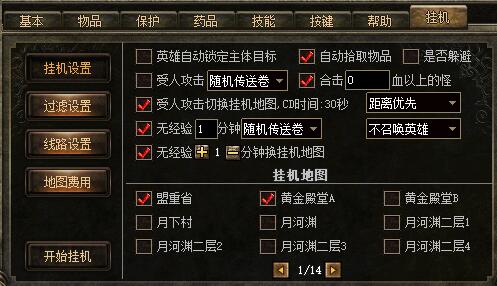 2.AI智能挂机:多久没有经验使用随机传送石、盟重回城石、自动切换地图等;